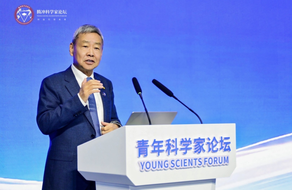 腾冲科学家论坛联合主席饶子和在论坛上致辞,并寄语青年科学家勇担时代使命,在科技创新的浪潮中书写青春华章。