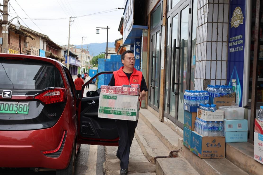 澄江市烟草专卖局员工驾驶新能源车送货上门(6月13日摄)。陈志青 摄