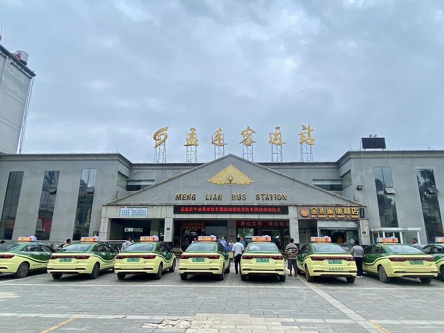 孟连县举行首批“牛油果”出租车暨流动普法宣传车投放启动仪式。(7月11日摄)。魏冬娜 摄