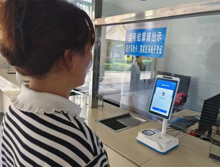 “刷脸就医”功能是以医保电子凭证为媒介,通过激活医保电子凭证时留存的信息,来识别就医购药人的身份,参保人员在通过国家医保服务平台开通电子医保凭证后,即可通过综合服务终端设备进行智能识别和医保电子凭证的“实人认证”,完成挂号、缴费、结算等全流程业务,可大幅缩短患者看病就医时间。