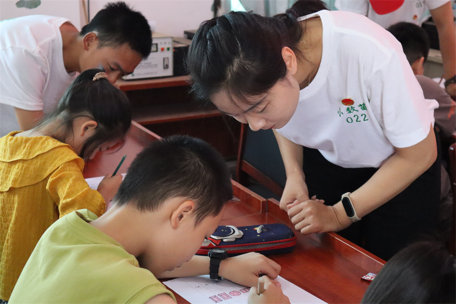 云南师范大学数学学院学子开展暑期“三下乡”社会实践活动(7月18日摄)。云南师范大学 供图