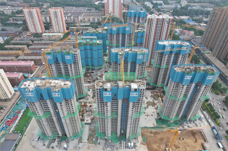 保定城市更新项目水碾头、西五里铺安置区共20栋主楼主体结构全面封顶(5月30日摄)。中国能建葛洲坝建设公司 供图