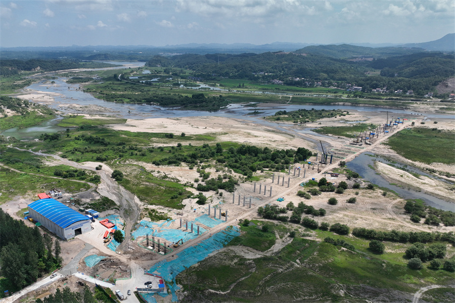 和襄高速公路六安段东淠河特大桥施工现场(8月1日摄)。中国能建葛洲坝建设公司 供图