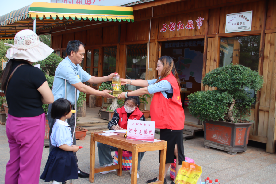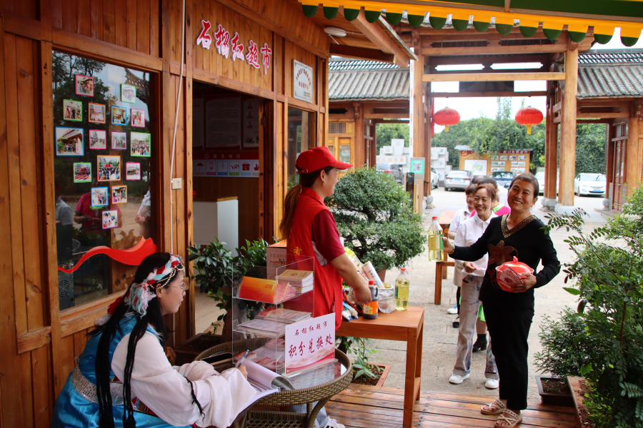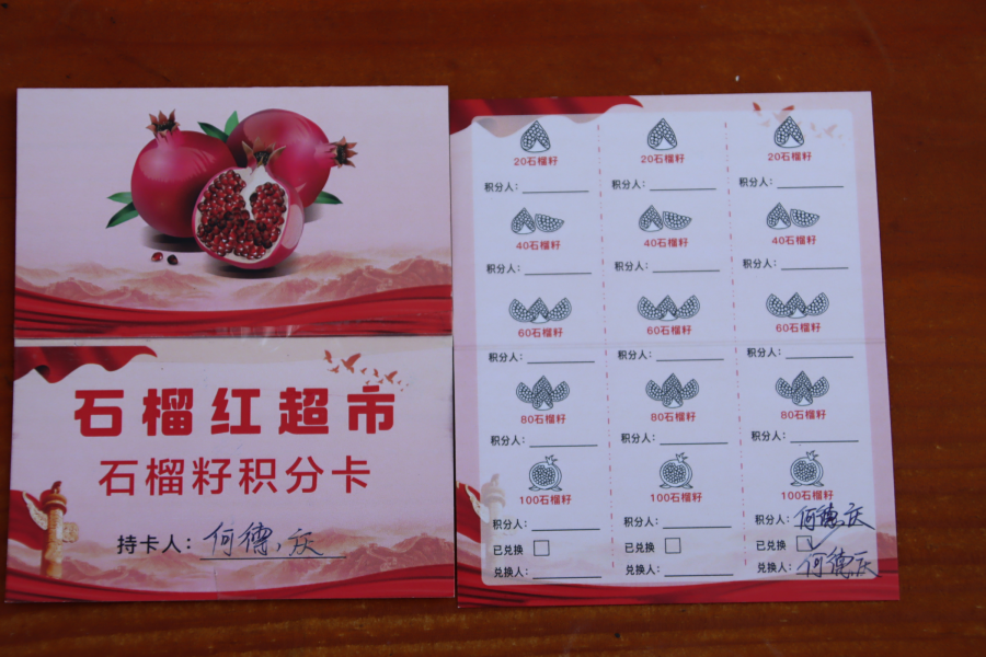 走进位于云南省曲靖市麒麟区沿江街道大龙社区的“石榴红超市”,环境干净整洁,各式商品一排排整齐地摆放在货架上。不同的是商品下方的标价牌变成了“石榴籽”积分牌,一支铅笔10个积分、一块肥皂10个积分、一瓶酱油20个积分……