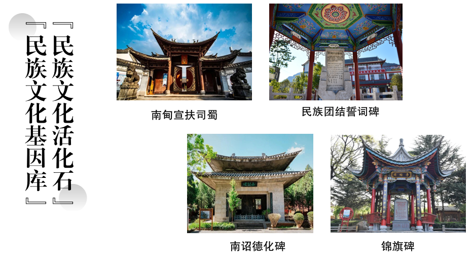 千百年来,坐落在德宏景颇族自治州的南甸宣扶司署、矗立在普洱市宁洱哈尼族彝族自治县的民族团结誓词碑、大理白族自治州的南诏德化碑、丽江纳西古城内的锦旗碑等见证着各民族和睦相处、和衷共济、和谐发展的历史。