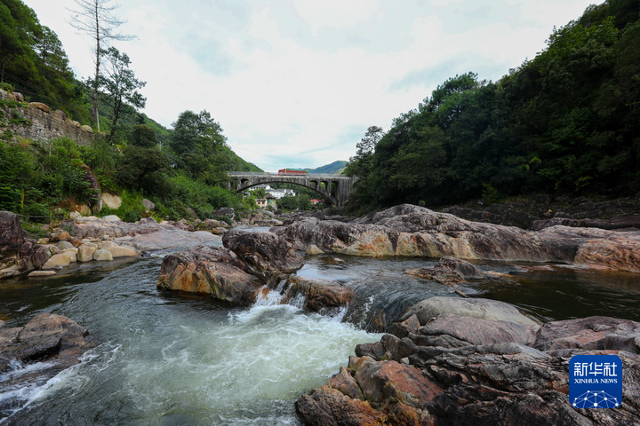 8月11日拍摄的史迪威公路北线云南腾冲市猴桥镇猴桥社区槟榔江上的涵拱桥。新华社发(龚祖金摄)