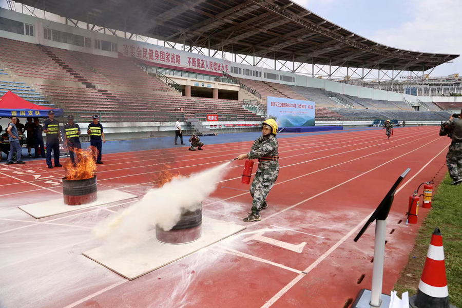 本次竞赛活动设置1个个人项目(百米着装负重跑)和3个团体项目(出水控火操、转运伤员灭火操、400米消防接力),既考察个人体能素质和检验团队协作能力,又充分检验各单位消防安全应急管理和微型消防站“灭早、灭小、灭初期”能力,同时也为提高全市卫生健康系统消防安全管理水平提供了一次现场教学。