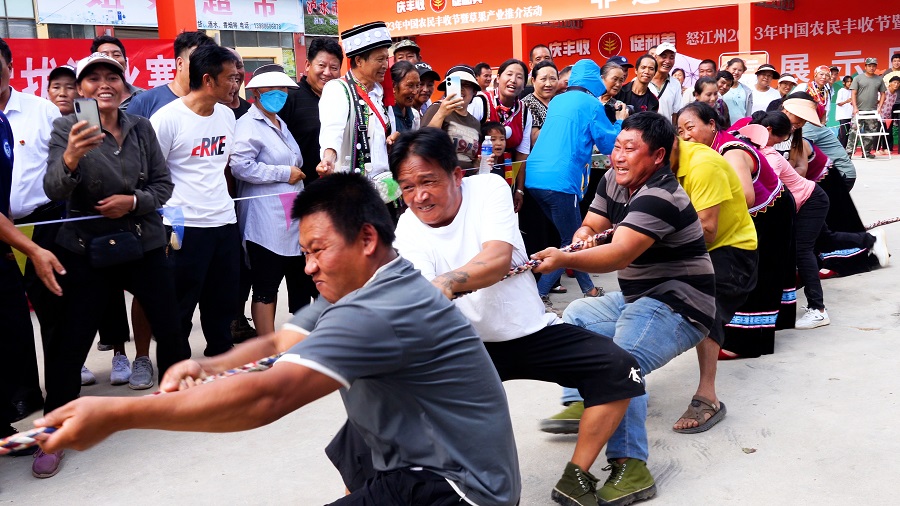 拔河比赛(9月23日 摄)。泸水市融媒体中心 供图