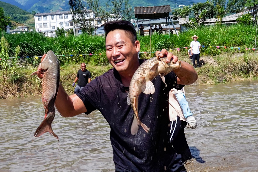 抓鱼比赛(9月23日 摄)。泸水市融媒体中心 供图