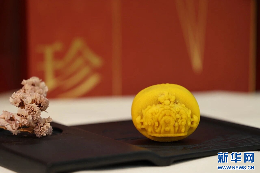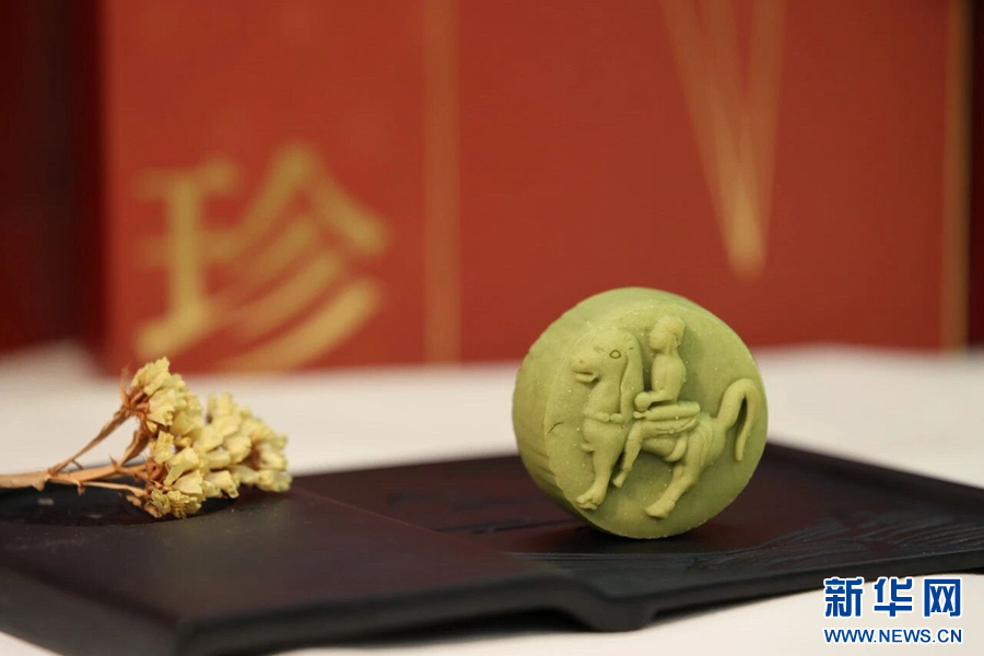 以馆藏文物“四牛鎏金骑士铜贮贝器”为灵感制作的文创月饼(资料图)。新华网发(云南省博物馆 供图)
