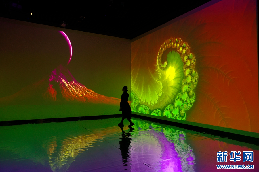 《彩焕南云——中国与东南亚数字艺术展》特展展厅局部(摄于9月5日)。新华网发(丁凝 摄)