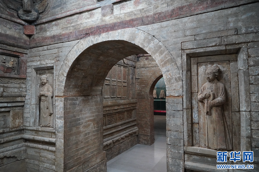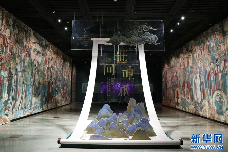 《世间神祇——山西寺观与墓葬中的图像艺术》特展展厅局部(摄于9月28日)。新华网发(刘思琪 摄)