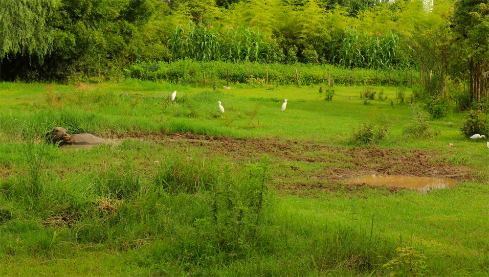 鹭鸶与水牛(8月1日 摄)。李志旭 摄