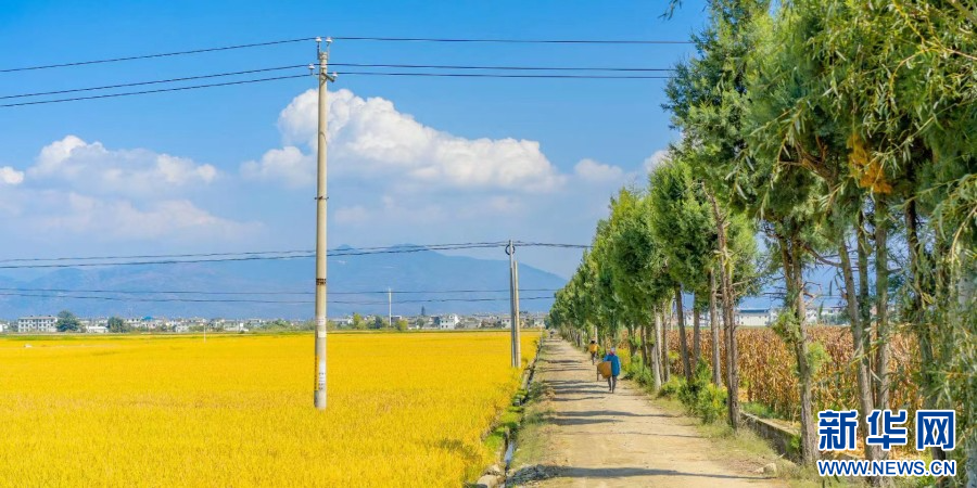 深秋,云南省大理白族自治州的稻田迎来丰收,田野染金、洱海碧波、苍山点翠相映成趣,一幅色彩明丽、如诗如画的秋日画卷在苍洱大地展开。(完)(大理市融媒体中心 赵正银 韩玉婷)