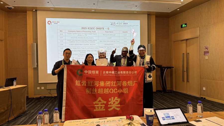 近日,红云红河烟草(集团)有限责任公司红河卷烟厂制丝超越QC小组的QC成果《预处理工段烟箱自动清洁装置的研制》以分赛区第一名的成绩获得第48届国际质量管理小组会议(简称“ICQCC”)金奖。