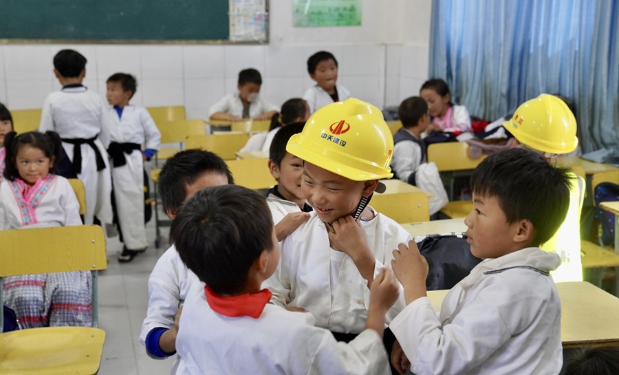 近日,中天建设集团有限公司第八建设公司(以下简称“中天八建”)的志愿者们到昆明市禄劝彝族苗族自治县翠华镇汤郎箐小学开展筑梦“小小建筑工程师”公益课堂,并为孩子们送去物资和学习用品。