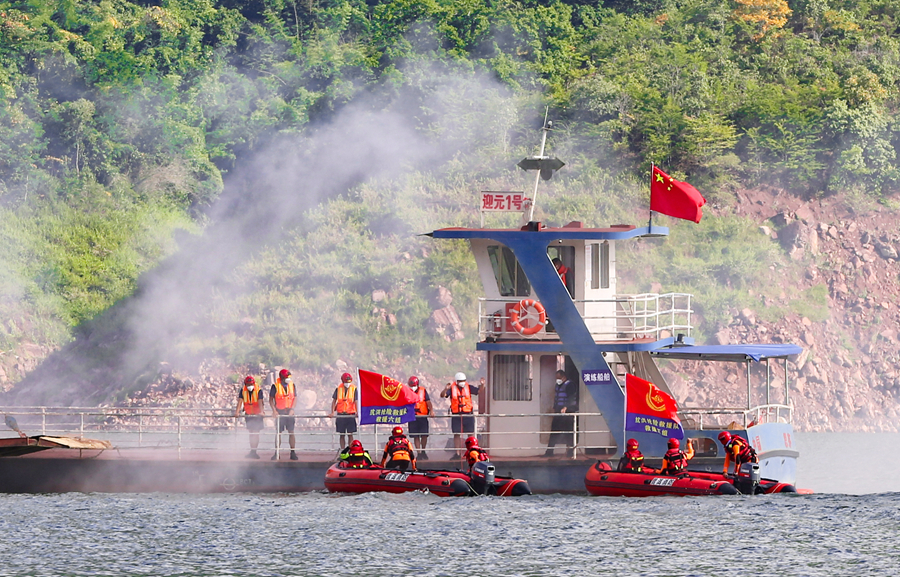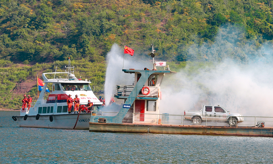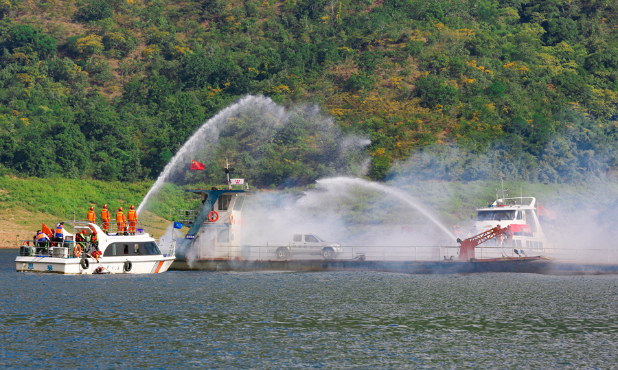 此次演练模拟实载12人的“迎元1号”车客渡船,与空载回程的“科普勰203号”客渡船发生碰撞,造成人员落水被困、油舱漏油、机舱起火等险情。普洱市消防救援支队调派15车8艇100人水域救援专业队开展实战演练,全面检验了参演队伍的应急反应及科学处置能力。(完)(何有刚 贺云富)