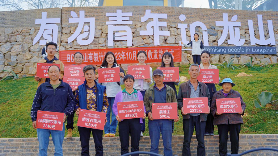日前,在云南省昆明市安宁市温泉街道龙山村产业帮扶“村企合作”经济收益发放仪式上,村民们欣喜地接过了印有他们名字和收益金的牌子,而这些收益均来自“BCC龙山有氧计划项目”。