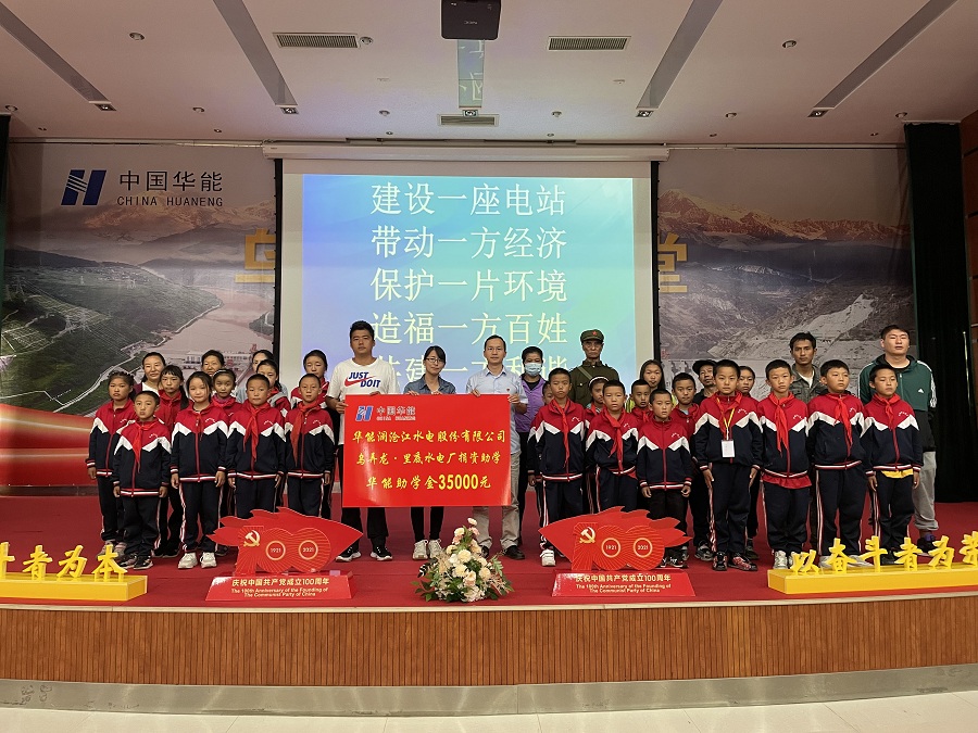 助学金捐赠(资料图)。华能乌弄龙·里底电厂 供图