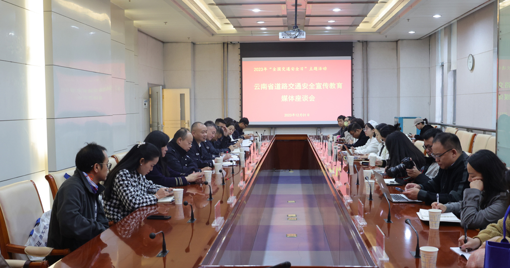 12月1日上午,云南省公安厅交通警察总队组织召开全省道路交通安全宣传教育媒体座谈会,省委宣传部、省公安厅新闻办、省公安厅交通警察总队、中央驻滇、省内主流新闻媒体相关负责人参加会议。会议通报了2023年度云南道路交通安全管理工作,并围绕如何做好道路交通安全宣传教育工作进行深入探讨交流。参会同志就道路交通安全宣传教育工作建言献策,一致表示将群策群力,共同致力于增强交通安全文化传播度、影响力,增强交通安全宣传教育穿透力,提升广大交通参与者的安全意识、法治意识和文明意识,努力营造安全畅通、文明和谐的道路交通环境。