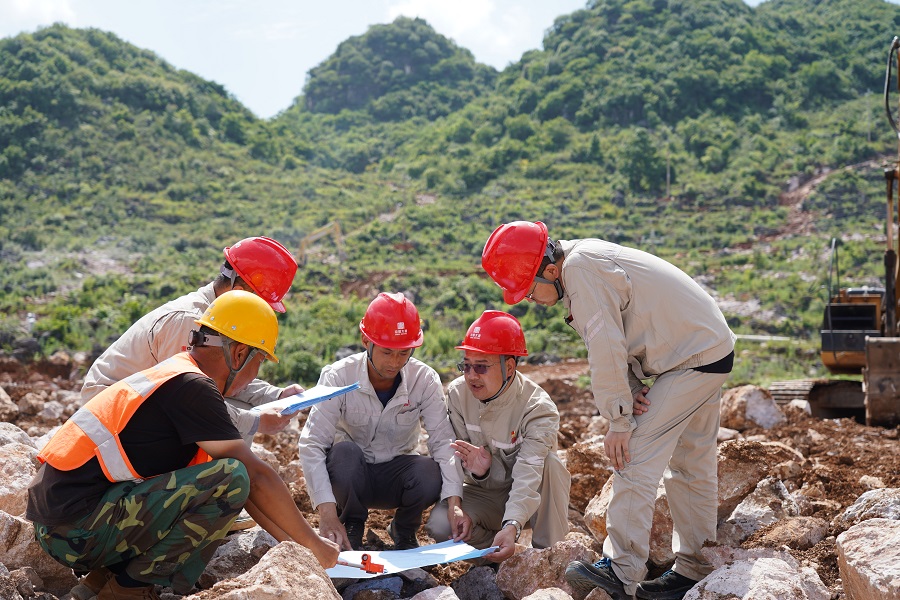 “工程建设党员突击队”在现场与参建单位沟通协调(4月15日摄)。资道勇 摄