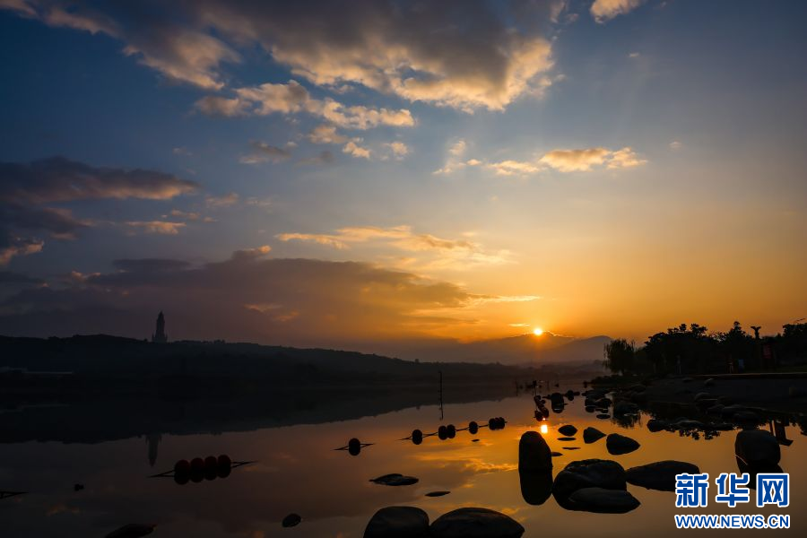 2024年1月1日,昆明干沟尾湿地公园迎来2024年第一缕晨光。(梁志强 摄)