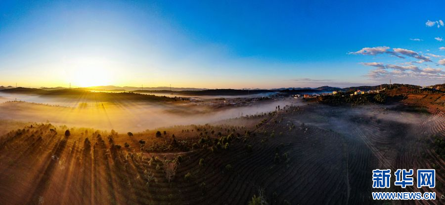2024年1月1日,云南省曲靖市沾益区清晨第一缕阳光。(孙文来 摄)