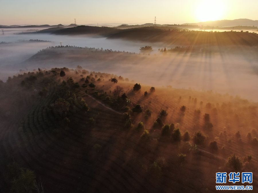 2024年1月1日,西双版纳景洪市万亩茶园迎来2024年第一缕晨光。(李云生 摄)