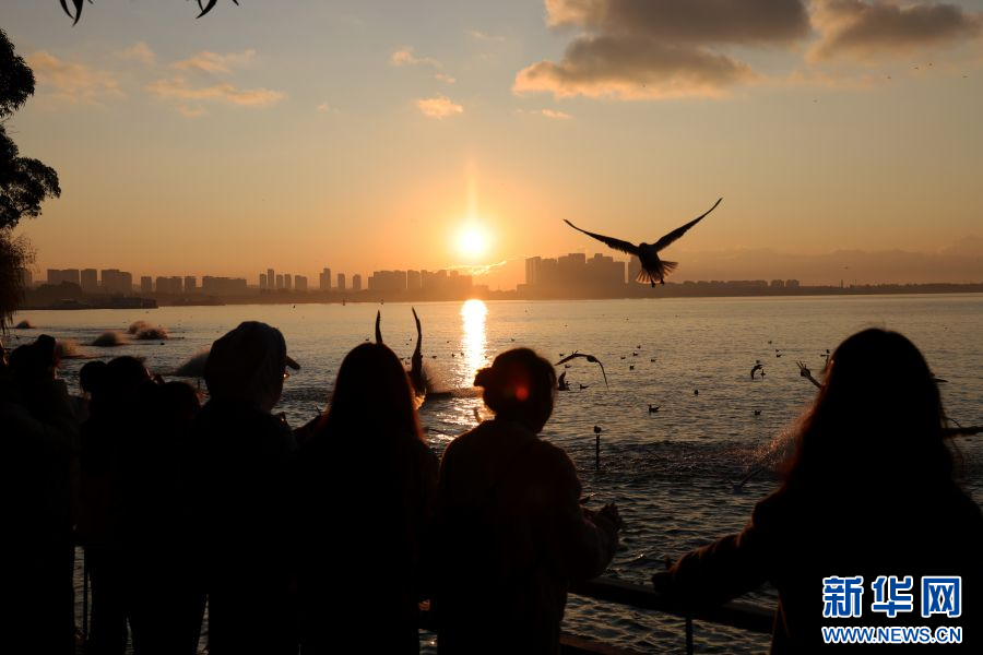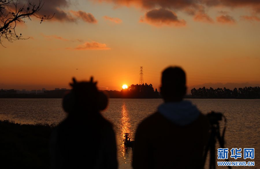 2024年1月1日,在云南省昆明市西山区滇池拍摄新年的第一缕晨光。 (张正举 摄)