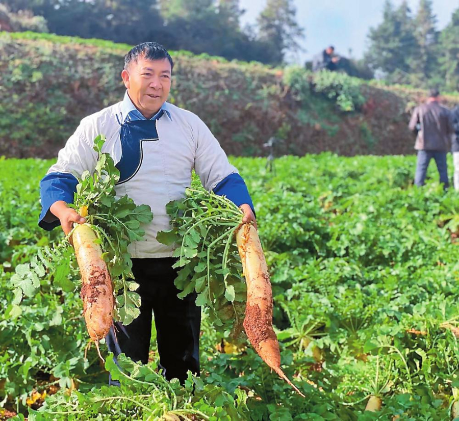 2010年,结合南华县农科人员的建议和市场反馈,周光顺等带头人总结经验后发现,品种不好是萝卜难卖的主要原因。经过筛选,“亚美百春”这一品种很快进入大家的视线,试种后,口感香脆、个头大的萝卜赢得了大家的一致好评。