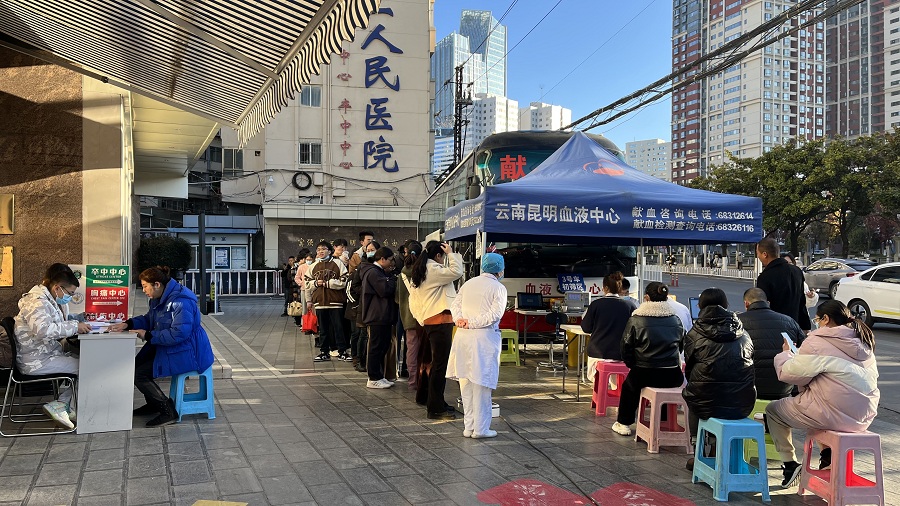 采血现场(1月5日摄)。云南昆明血液中心 供图