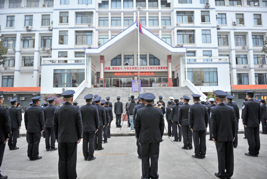 勐腊县公安局举行升警旗仪式(1月10日摄)。西双版纳州公安局 供图