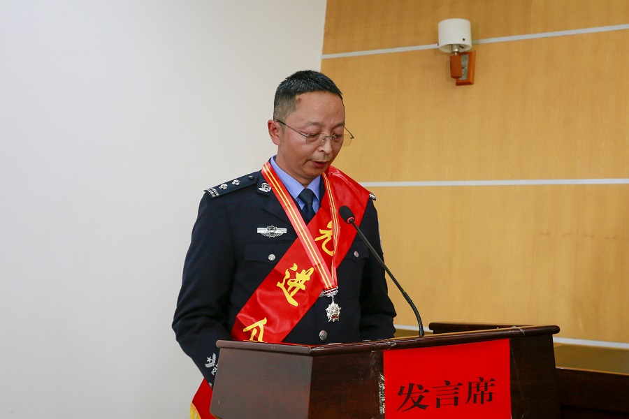 杨新祥发表感言(2月1日摄)。腾冲市公安局 供图