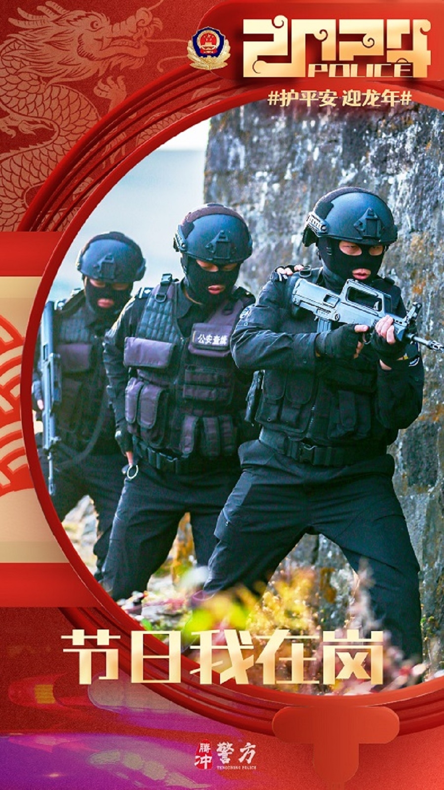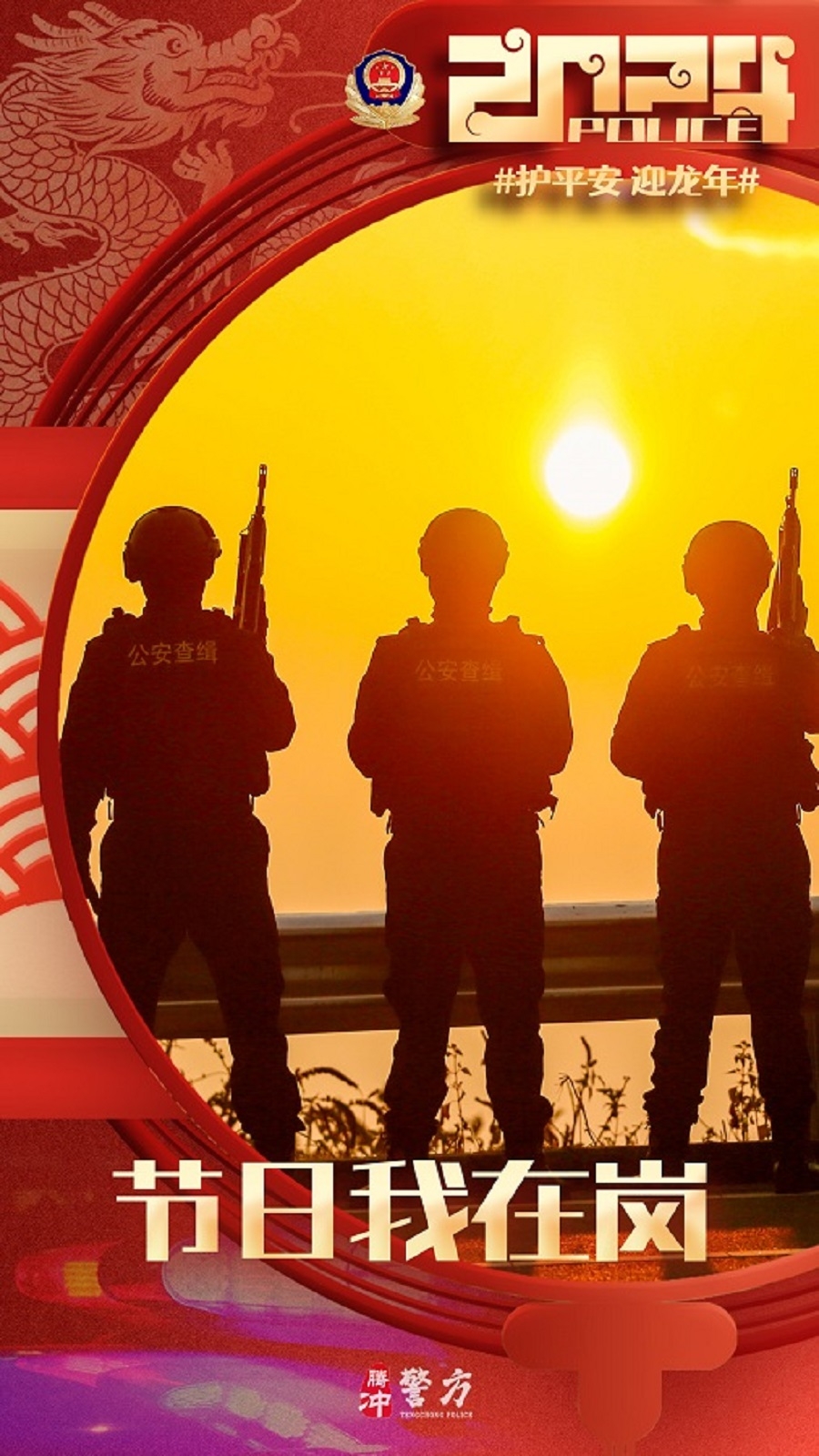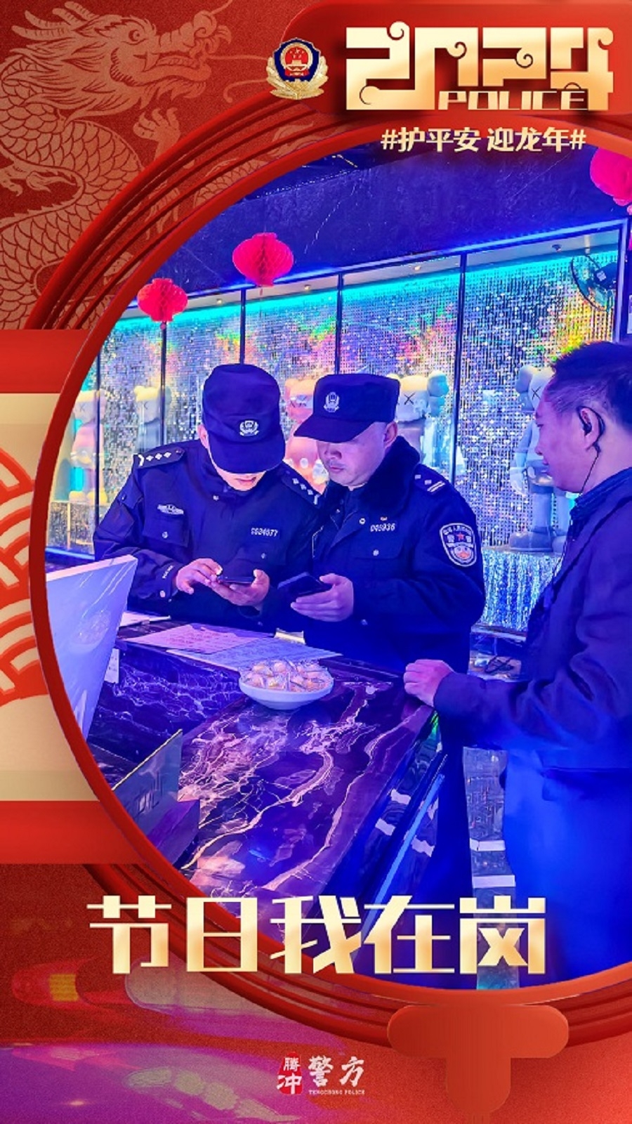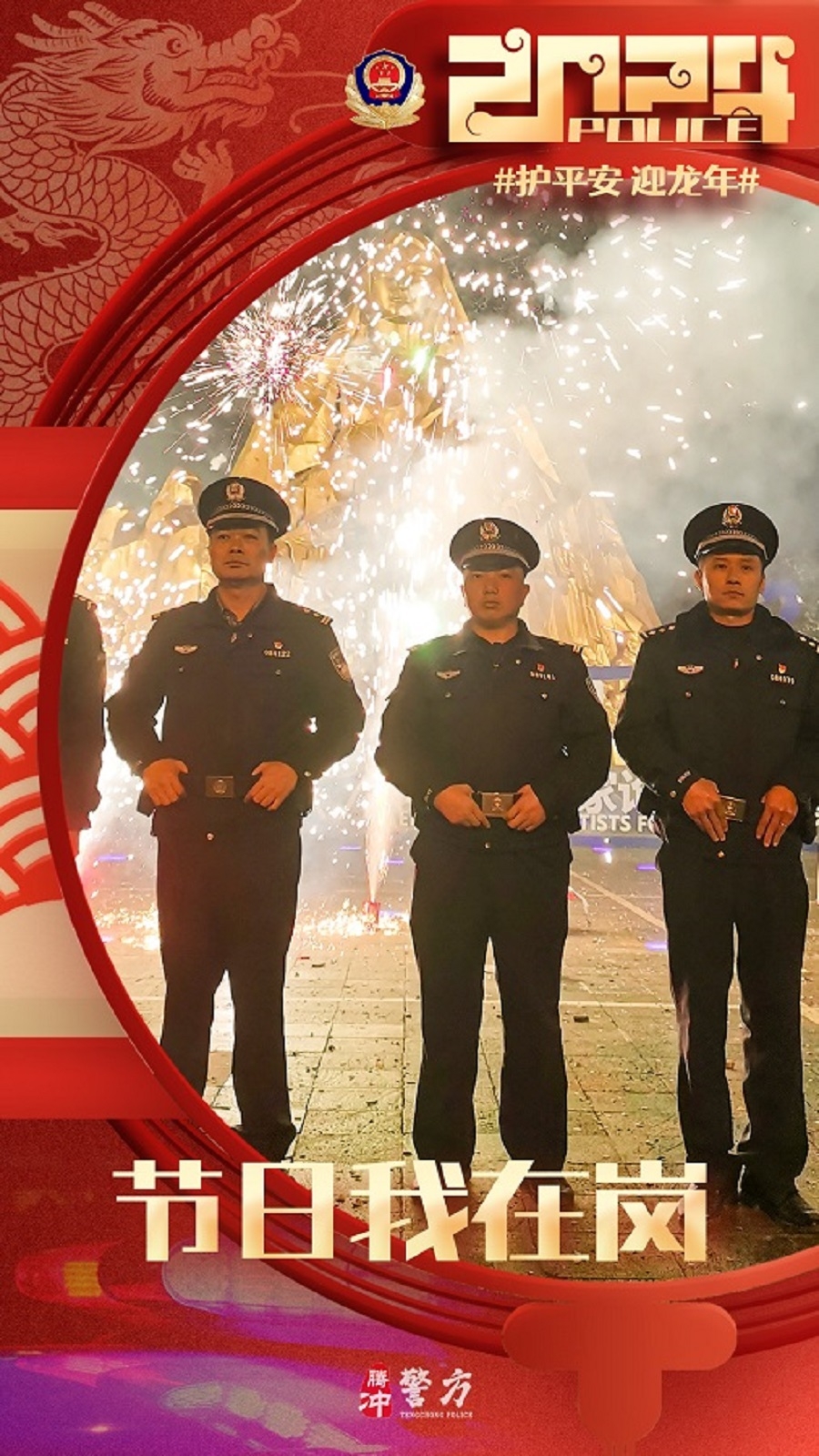 春节期间,腾冲公安坚守岗位,做好各项安保维稳工作,保障道路交通安全畅通,社会面和谐稳定,全力以赴圆满完成春节安保工作。(完)(杨根蔚)