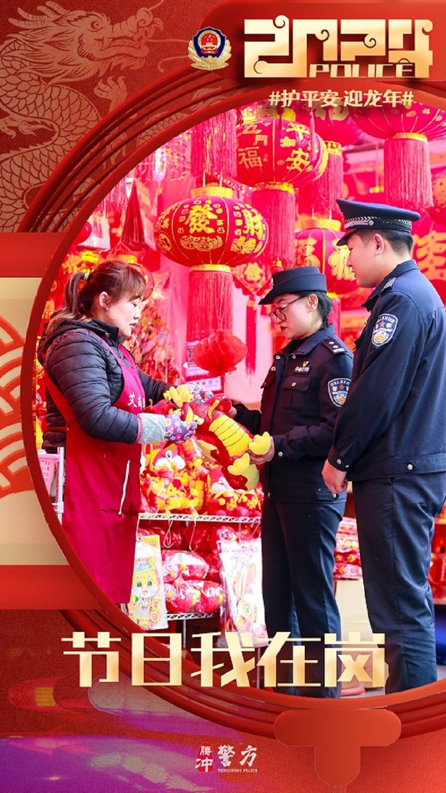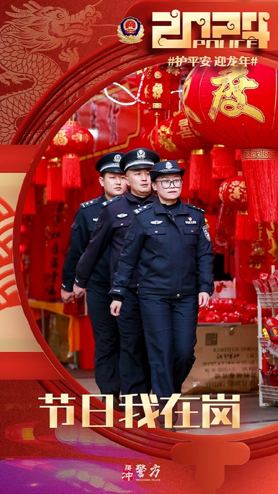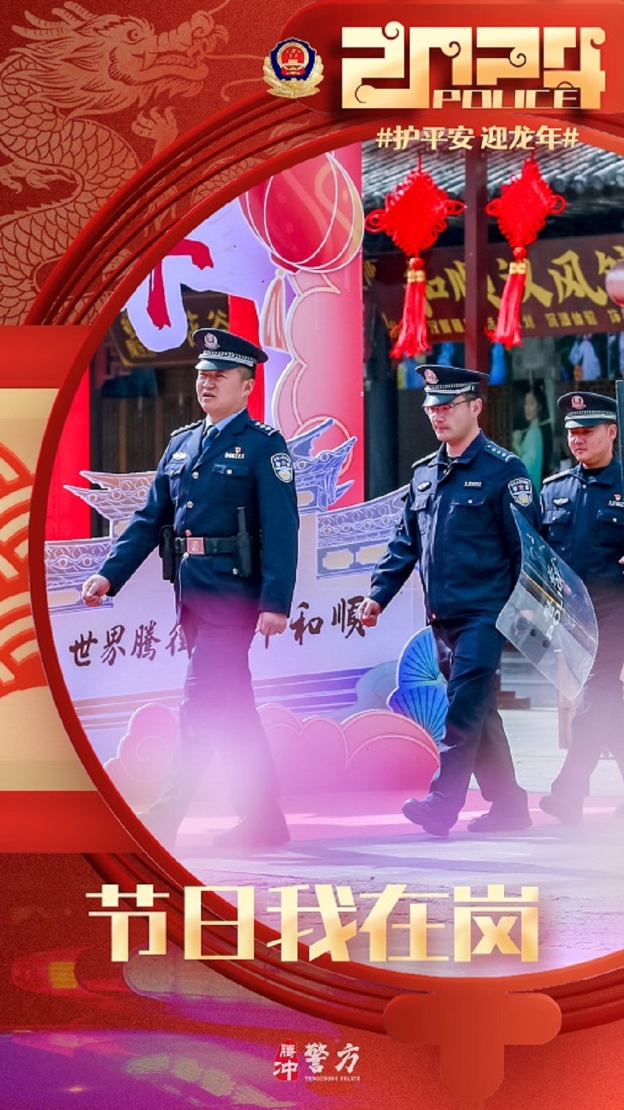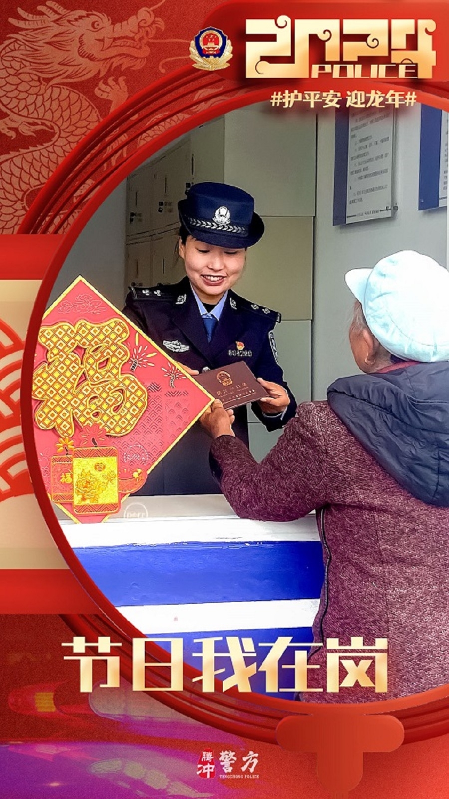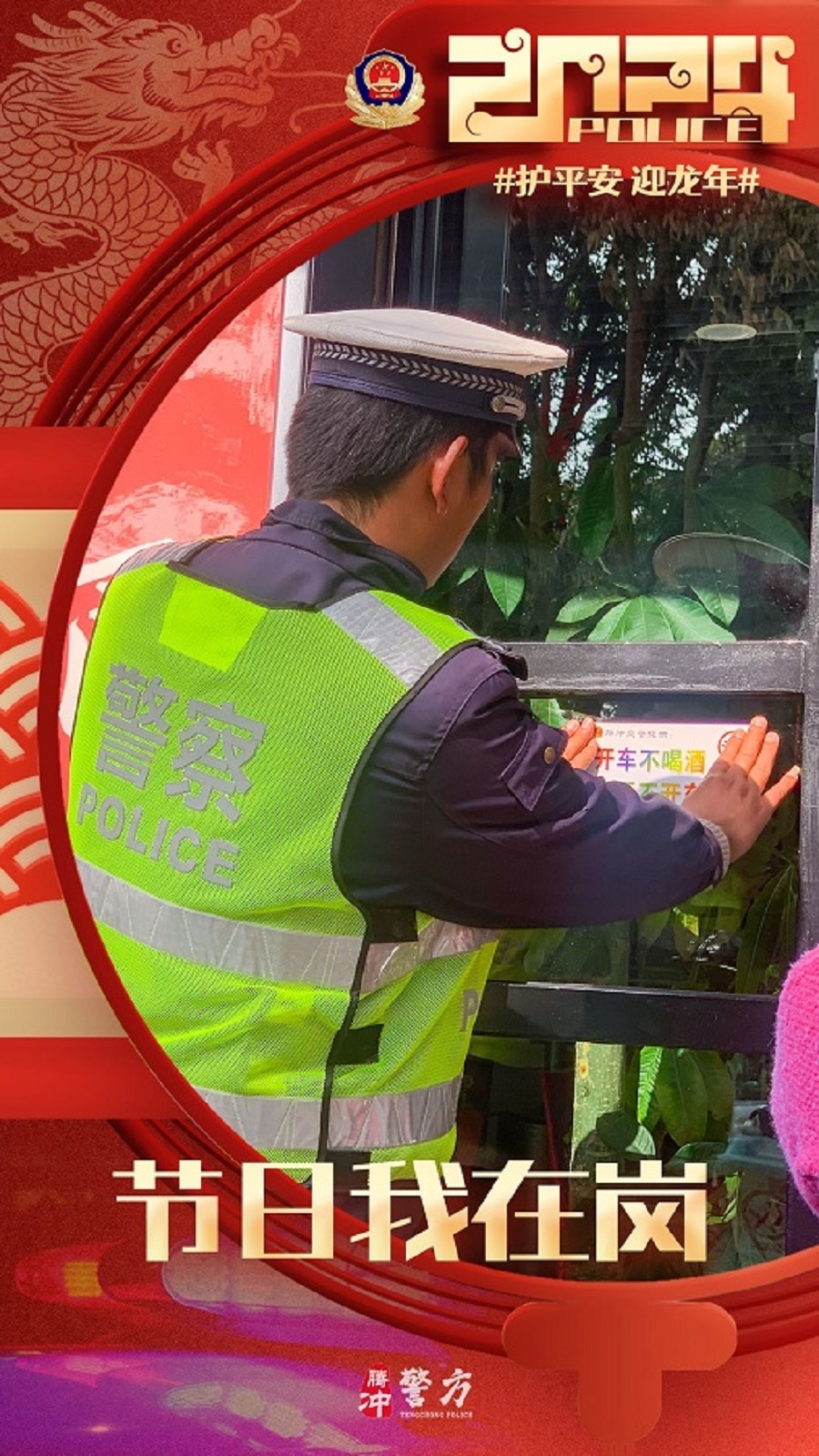 春节期间,腾冲公安坚守岗位,做好各项安保维稳工作,保障道路交通安全畅通,社会面和谐稳定,全力以赴圆满完成春节安保工作。(完)(杨根蔚)