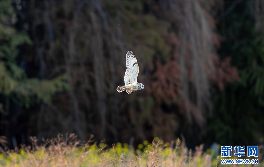 短耳鸮展翅飞翔(2月19日摄)。新华网发(宋光旭 摄)