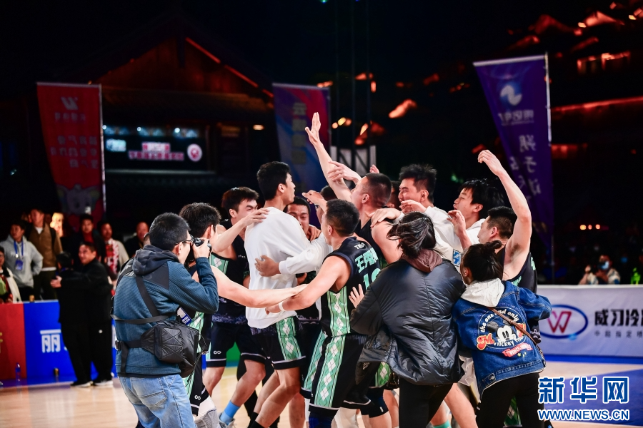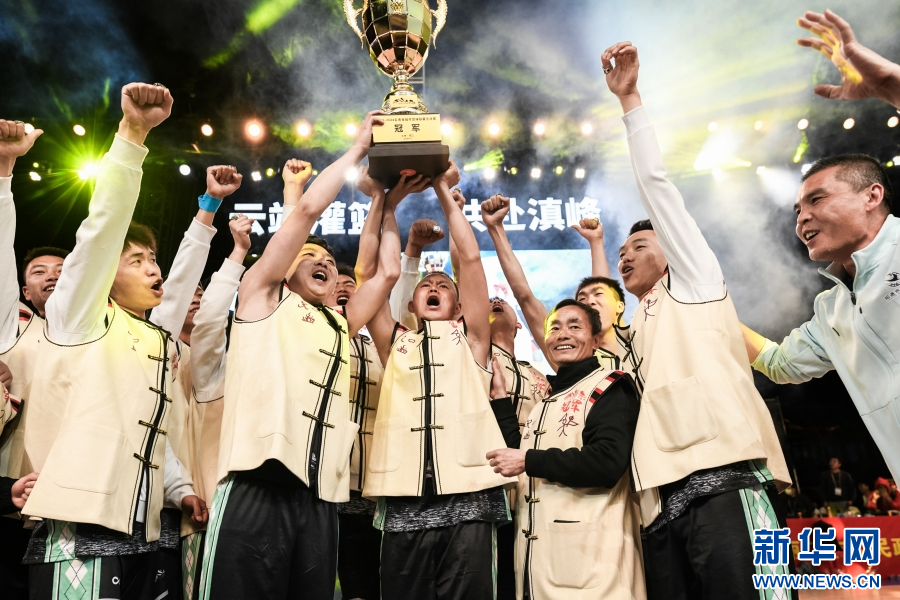 昭通市代表队夺冠瞬间(3月21日摄)。新华网发(云南省城市篮球联赛组委会 供图)