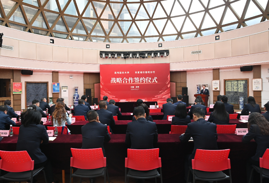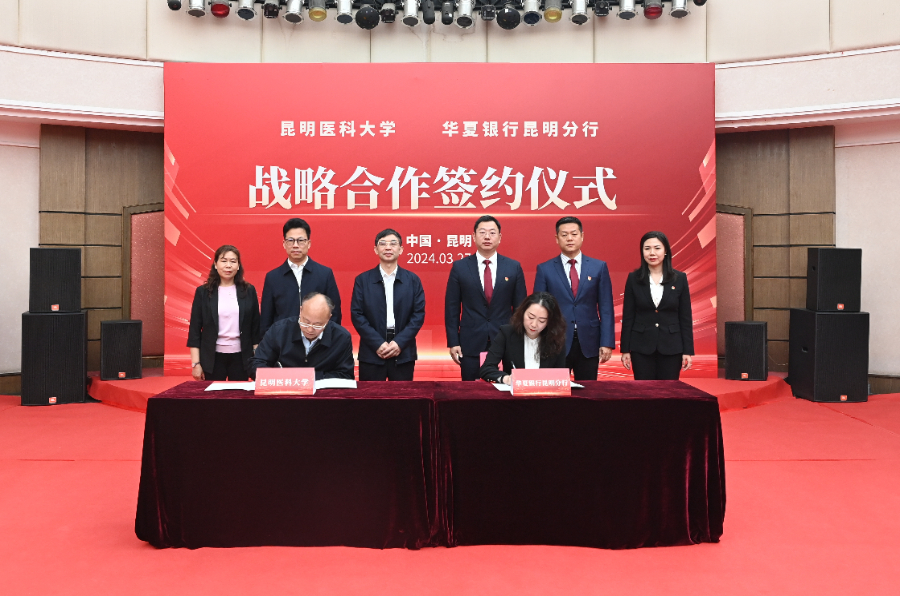 仪式上,昆明医科大学党委常委、副校长吴红明,华夏银行昆明分行党委委员、副行长季少青代表双方签署战略合作协议。