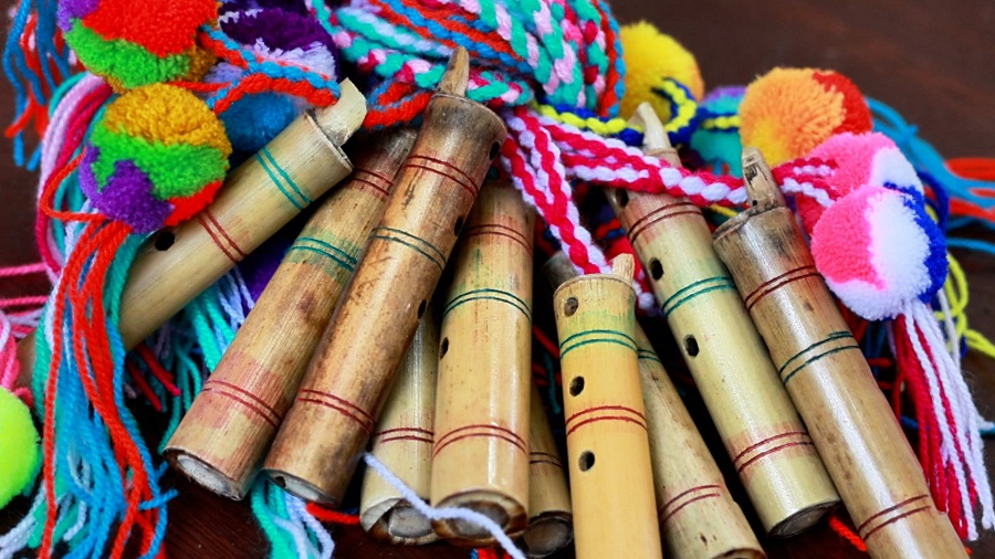 走进学校音乐教室,怒江州非物质文化遗产代表传承人邓福生正在教孩子们演奏民族乐器口弦和笛哩图。孩子们围坐在邓福生身边,颈挂笛哩图,手持口弦,认真聆听老师的讲解。在邓老师的指导和示范下,孩子们逐渐掌握了“秘诀”,一呼一吸间,配合手指灵活地弹拨、按压,一个个音符便跳跃而出。