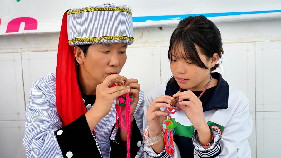 近日,云南省怒江傈僳族自治州泸水市古登乡中学开展“非遗进校园”活动,非遗传承人给学生们上了一堂独具民族特色的音乐课。