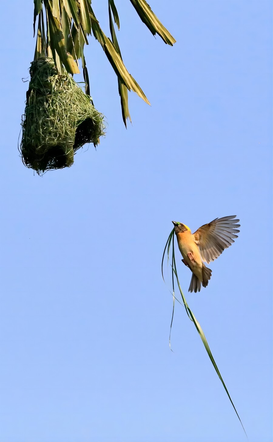 正在筑巢的黄胸织布鸟(5月1日摄)。陈永刚 摄