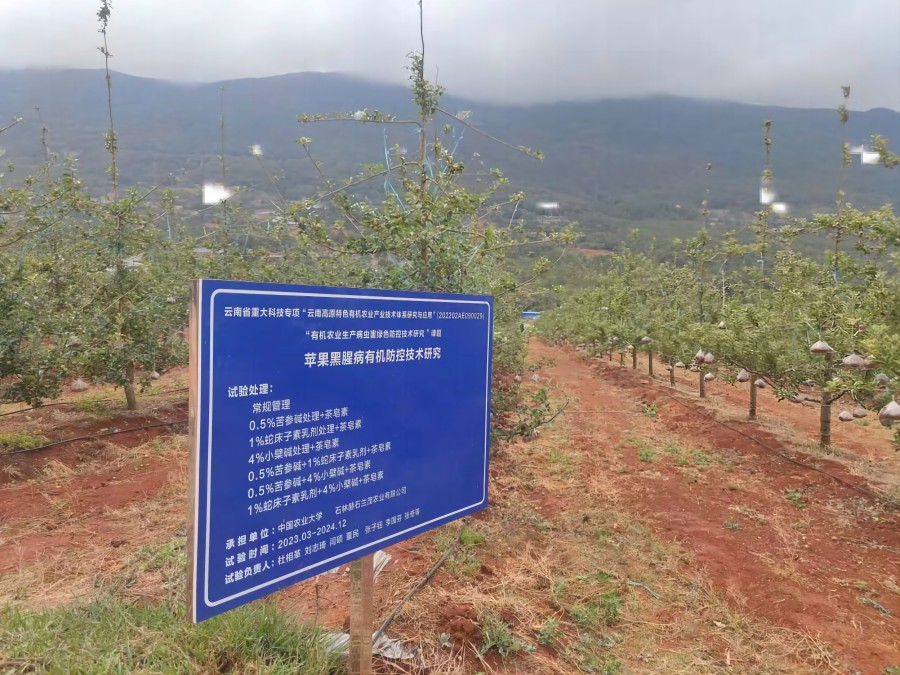 石林有机果园“苹果黑腥病有机防控技术研究”基地(5月13日摄)。供图