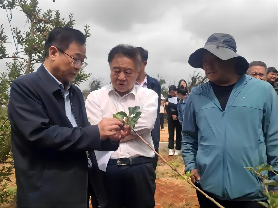 院士专家在石林有机果园查看果树情况(5月13日摄)。供图