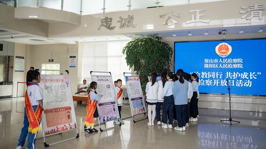 27日,云南省保山市、隆阳区两级人民检察院邀请保山市第二示范小学的师生走进隆阳区人民检察院,在“六一”国际儿童节前夕通过观摩、听课、座谈等方式,开展“检教同行 共护成长”检察开放日活动。