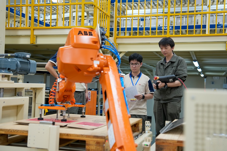 李季蒙用编程控制ABB机器人(资料图)。韩沅峰 摄