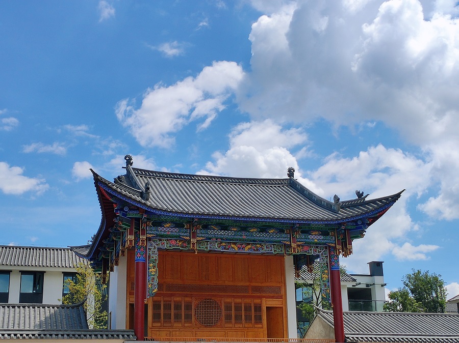 “1806”小镇充分吸收白族传统建筑合院式、组团化布局特点,配套建设戏台、牌坊等白族村落中常见的公共设施,并配备完善小镇现代服务功能的客事中心、物业中心、生鲜超市、幼儿园等,打造宜居宜业的新白族民居群。