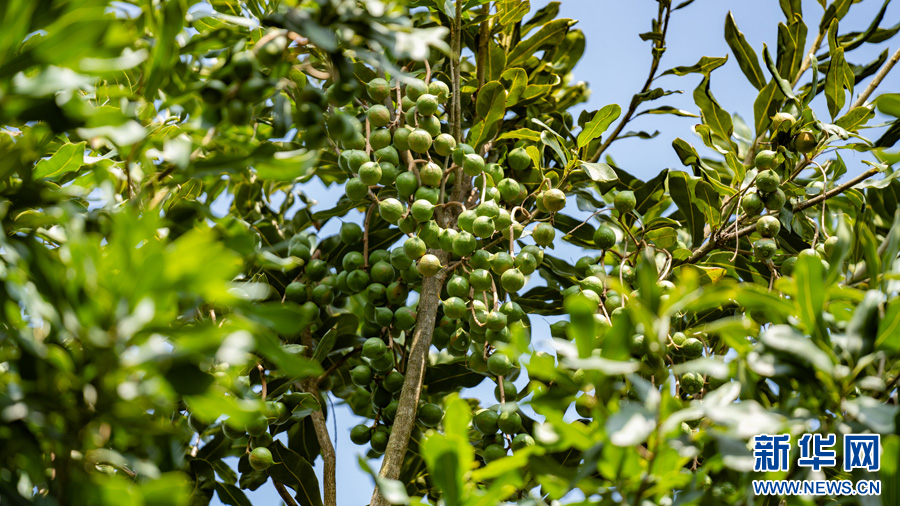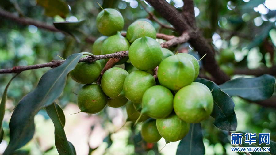 眼下,云南省德宏傣族景颇族自治州盈江县太平镇黄龙村澳洲坚果种植基地里的数千棵坚果树已经进入挂果期,一颗颗圆润饱满的澳洲坚果挂满枝头。