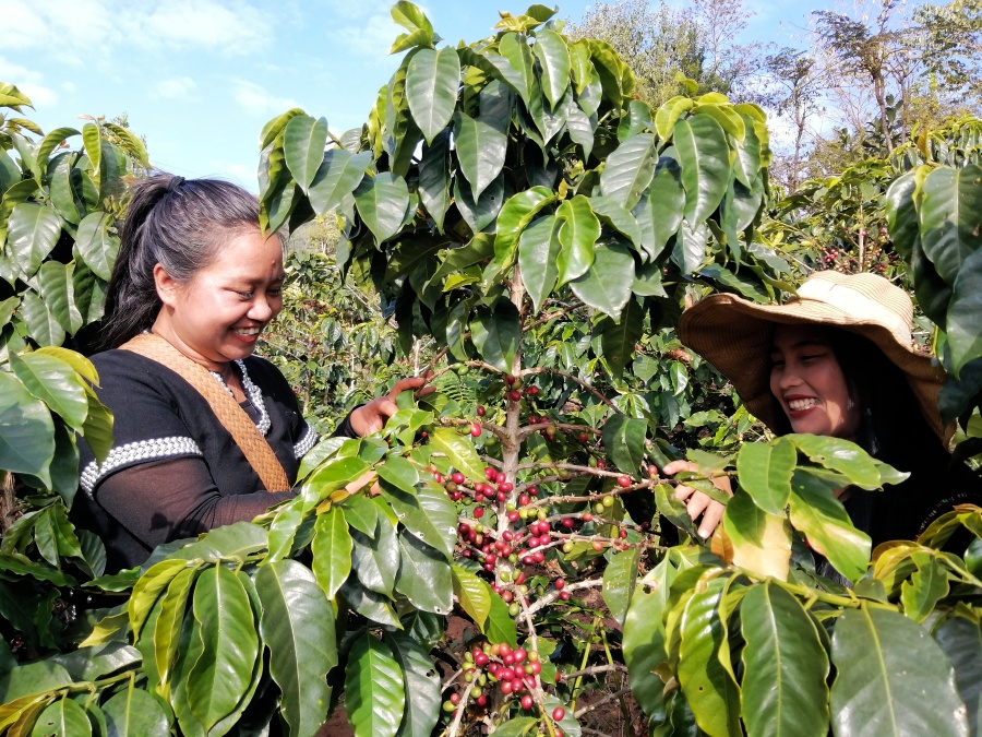 咖农采摘咖啡果(资料图)。岩三卡 摄