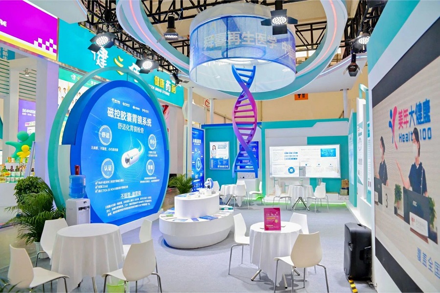 本次展会云南美年大健康带来了一系列前沿的健康体检创新产品和解决方案。展会现场,云南美年大健康的展区吸引了众多参观者的目光。其中,无麻醉、不插管的磁控胶囊胃镜系统尤为引人注目,只需随水吞服一颗胶囊,在检查床上躺15到30分钟,就可以完成一次胃镜检查。专业医护人员在展会现场进行了讲解和演示,让参观者对这项技术有了更直观的了解。