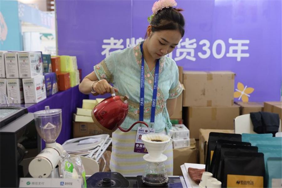 第八届南博会德宏咖啡展区(7月23日摄)。刘奕摄
